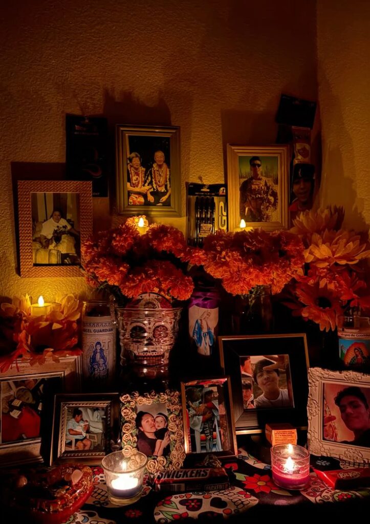 Estos rituales también nos permiten conectar con nuestro presente y con las personas que aún están vivas y queremos: planear, organizar y acomodar el altar implica amor y cuidado en cada gesto. Está en tu abuela que hace oraciones, en tu tía que va a buscar el cempasúchil, en tu hermana que cocina la comida para el altar. Cada uno de estos actos nos devuelve la humanidad.