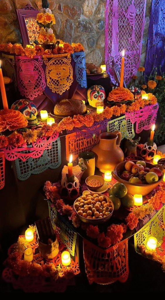 - Reconecta con la historia y la memoria colectiva: Al realizar el altar, honramos no solo a las personas amadas, sino también a nuestras ancestras, a quienes sostuvieron la vida antes que nosotras. Este gesto nos vincula con una genealogía femenina de cuidado, de transmisión y de memoria, donde la muerte no es olvido, sino continuidad.